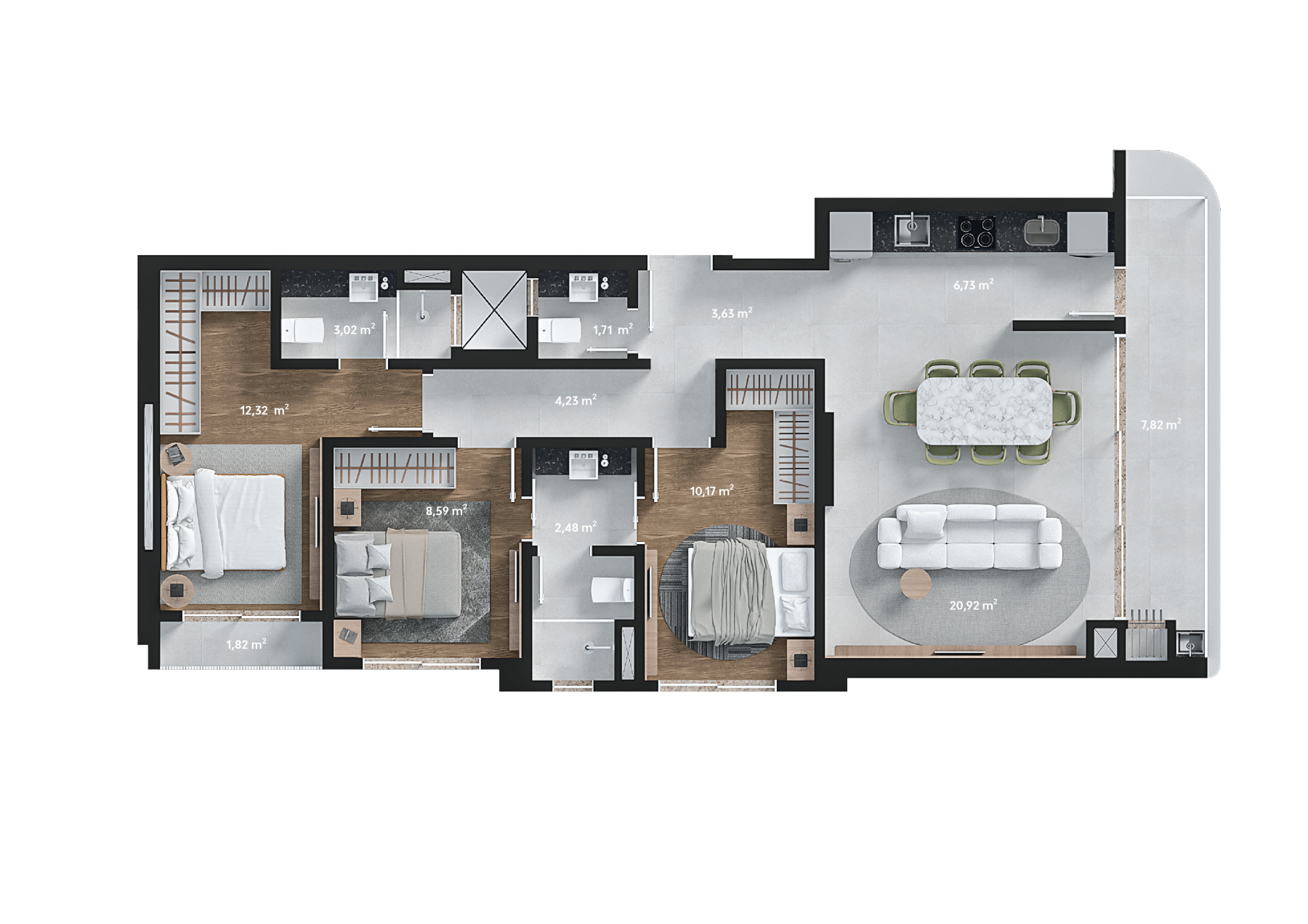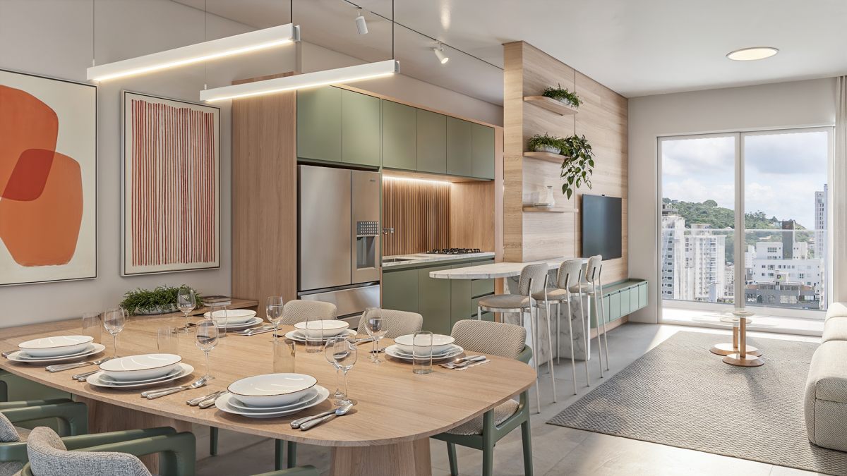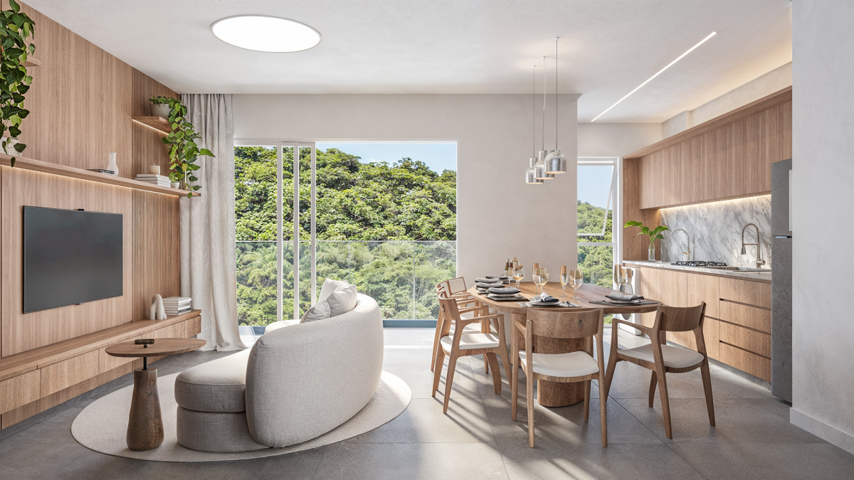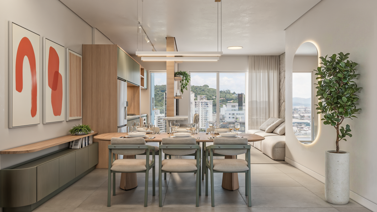 Apartamentos com plantas versáteis e ambientes integrados, oferecendo conforto e privacidade em opções de 1 a 3 suítes.